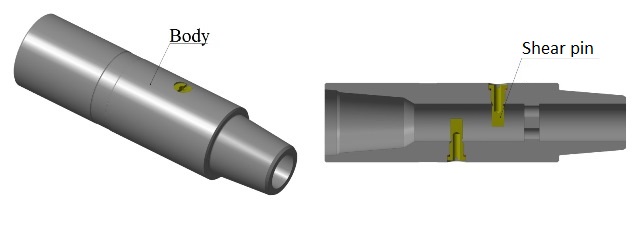 The drain valve consists of a high-alloy steel body with tool joint, two shear brass pins and an internal perforated screen.