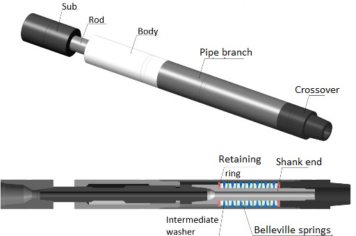 Vibrations are absorbed by Belleville springs that allow for optimal rigidity and resistance to high WOB of the shock sub.