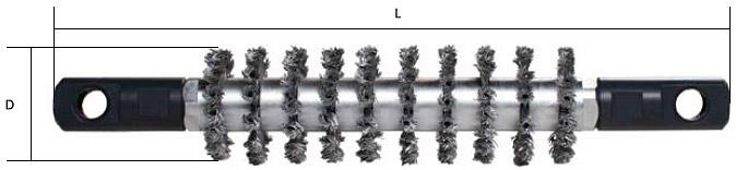 The brush mechanically cleans interior walls of tubing and drillpipe.