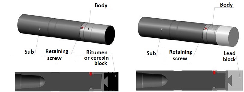 PT-U flat-bottom universal impression block determines size and position of a fish in tubing string during remediation in borehole. It features replacable blocks: lead, bitumen and ceresin, significantly extending application.