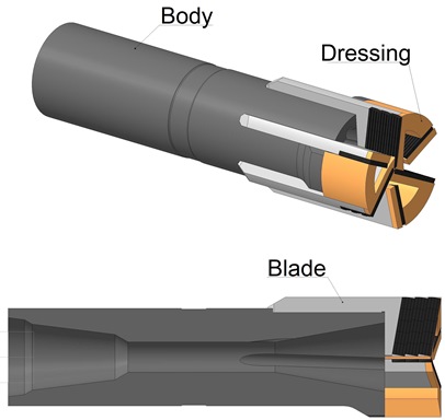 It has thread connection at the upper end and circulation ports and relevant watercourses for better cooling and efficient removal of cuttings at the lower face and flank.