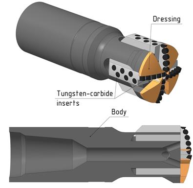 It has thread connection at the upper end, and ports and relevant watercourses for better cooling and more efficient removal of cuttings at the lower end.