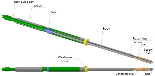 The tool consists of washover shoe, sub, body, extension, nut, retaining screw, catch sleeve, junk sub body (ShMU), junk sub sleeve(ShMU), pin and screw nut.