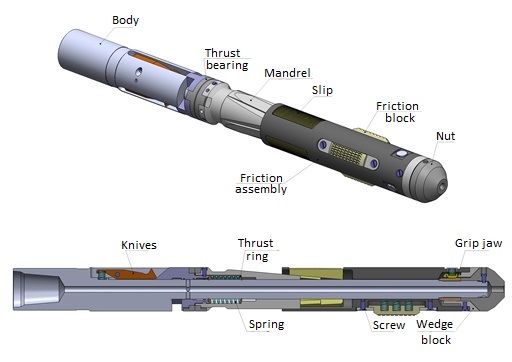 The cutter consists of a body, knives, knife releasing block, and anchor.