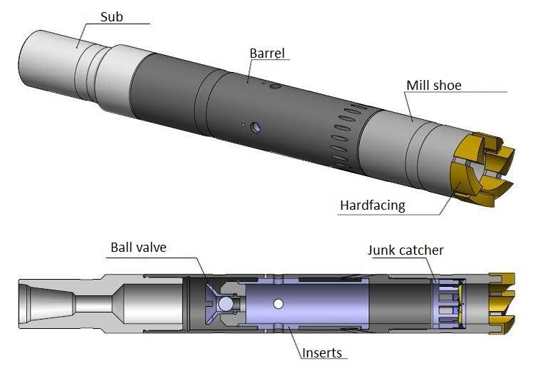 Hydraulic junk basket is available in right- and left-hand configurations, depending on thread direction, with several options of annular mill shoe, depending on abrasive-crushing welds-on – flat-bottom, wavy, geared, side wings.