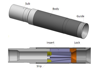 The fishing tool consists of a sub, a body, three inserts, set of replaceable slips, a dismountable lock and a guide.