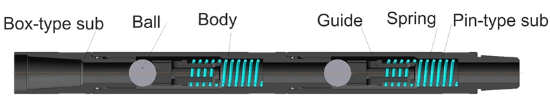 The valve consists of a valve body, two subs, hold-downs, balls, springs and O-rings. It is low-maintenance due to fewer components.