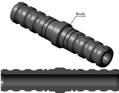 This roll-on × roll-on connector joins two pieces of coiled tubing. The connector is slipped into the coiled tubing and the coiled tubing is crimped into the mating shape on the coil connector providing a high strength tensile linear pull.