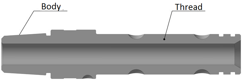 The dimple connector is a short alloy steel tube with shallow holes with O-ring grooves into the body and threads on the other end. The end with shallow holes is slipped into the coiled tubing and a dimple applicator is used to deform the coiled tubing wall into the dimple.